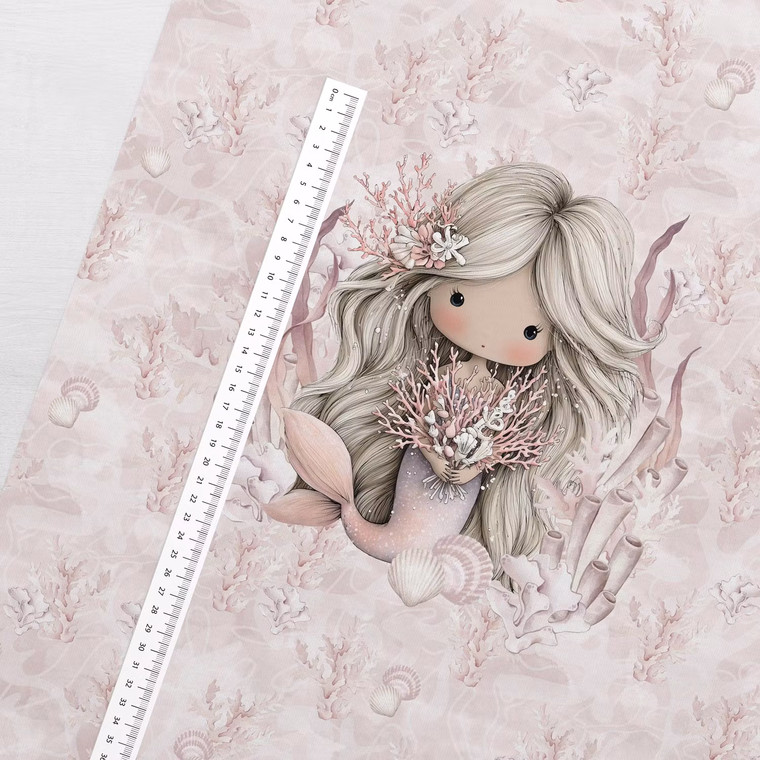 Låt en liten undervattensdröm ta form med Sjöjungfrudröm panel – ett sagolikt motiv där en stillsam sjöjungfru omges av koraller, snäckor och mjuka havstoner.