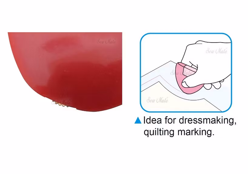 Detta röda krithjul är perfekt när du ska rita extra fina linjer på tyger. Det underlättar även när du ska markera på tyger som är svåra att rita på, till exempel fleecetyg.
