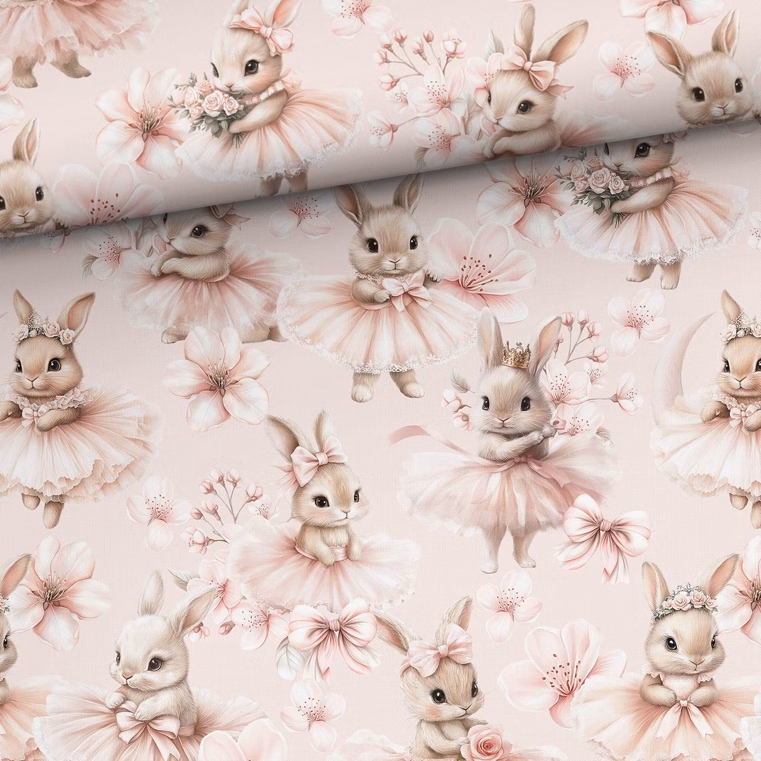 Balettkanin är ett tyg som sprider en mjuk och drömmig känsla – perfekt för alla som gillar kaniner, blommor och sagoinspirerade motiv