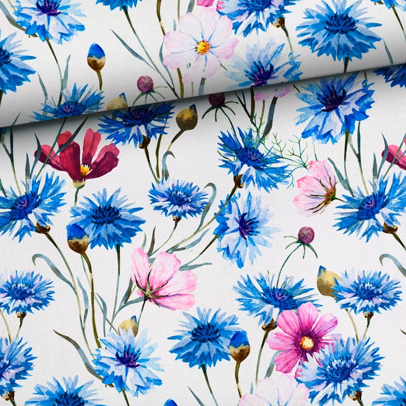 Denna trikå har digitalt tryck av vackra blommor på vit botten.