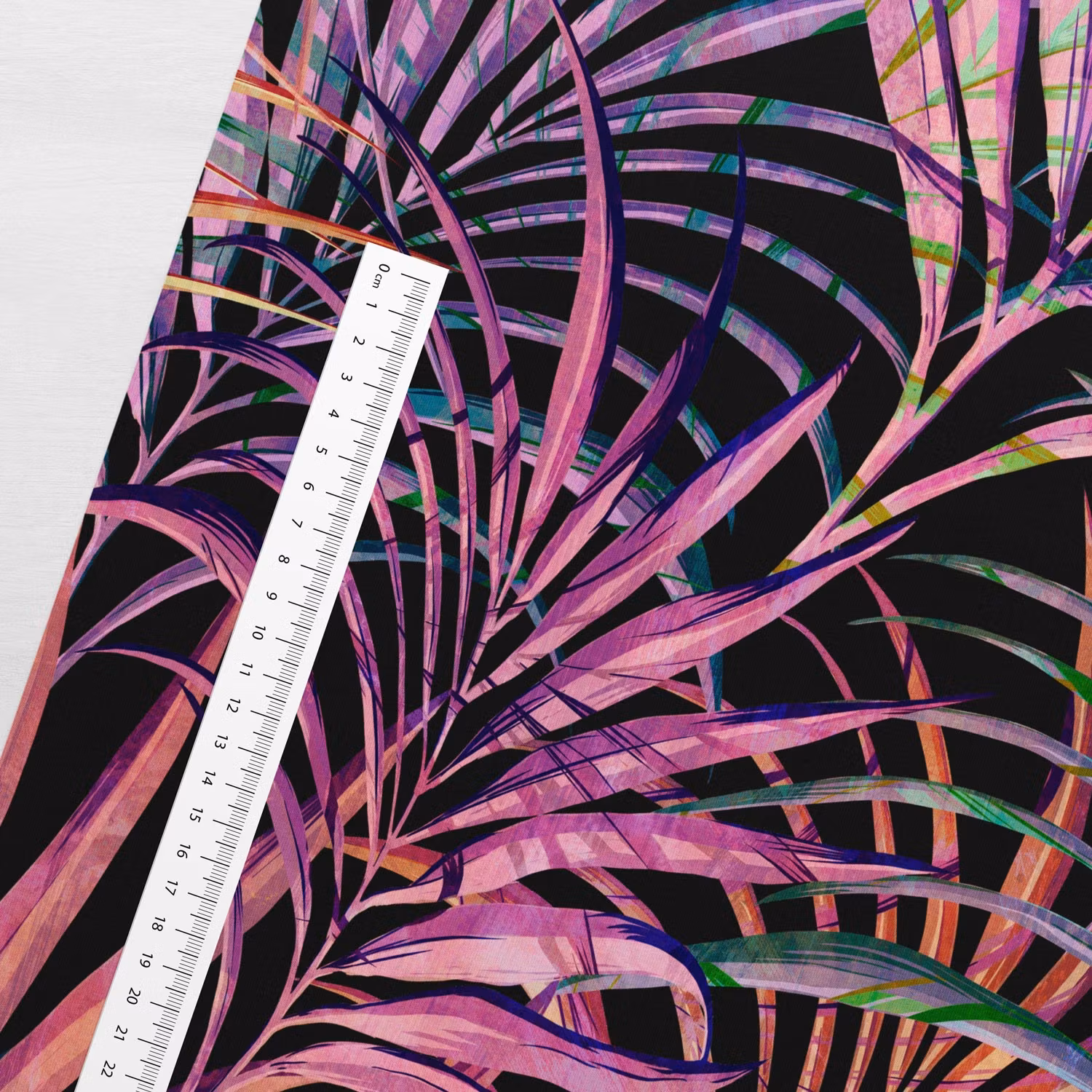 Ett iögonfallande jerseytyg som ger dina projekt en modern tropisk känsla.