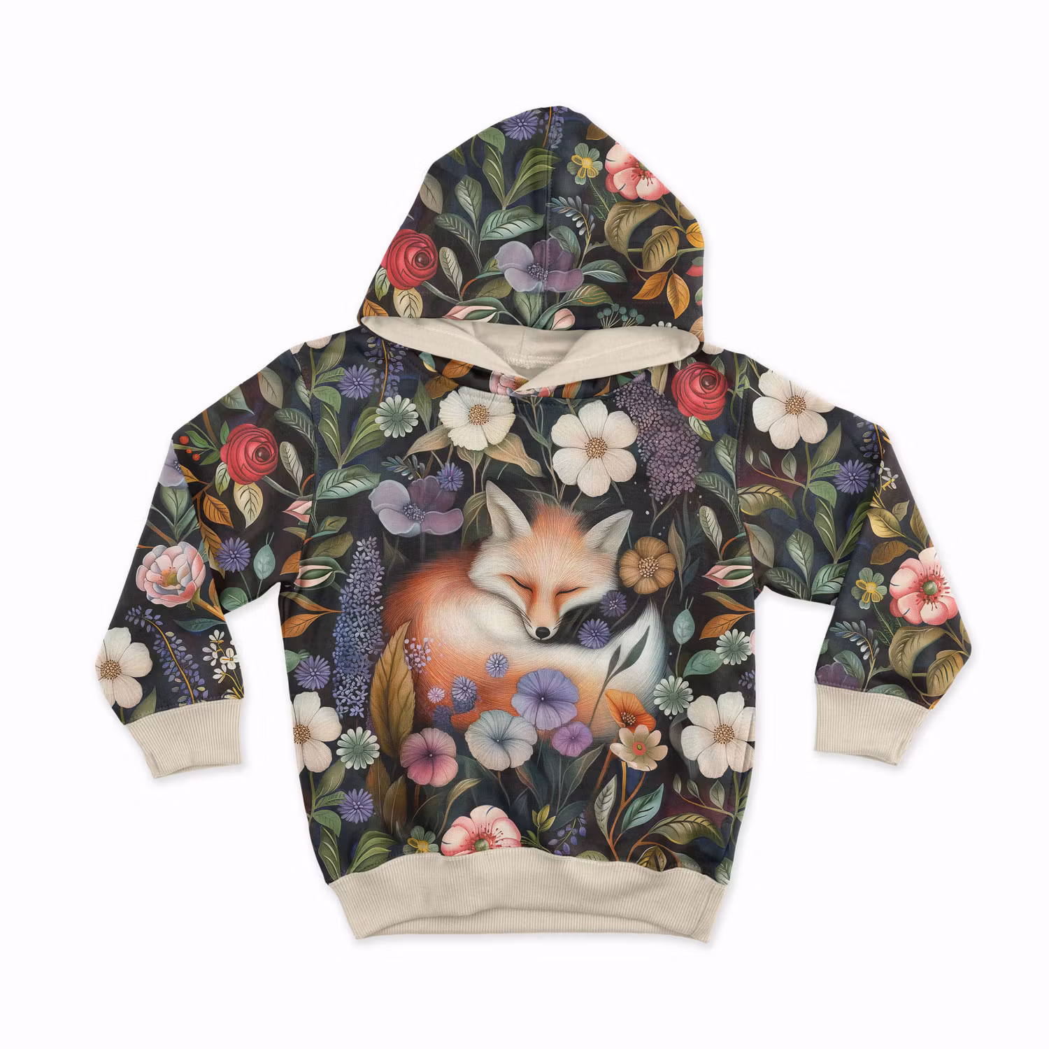 Låt kreativiteten blomma i en sagolik värld! Magisk Glänta är ett mjukt och följsamt joggingtyg fyllt av blomsterdetaljer och skogsinspirerade former som ger en lugn men lekfull känsla. Den mörka bakgrunden lyfter fram de mjuka färgerna och gör tyget lika fint till vardagsplagg som till mer unika kreationer.