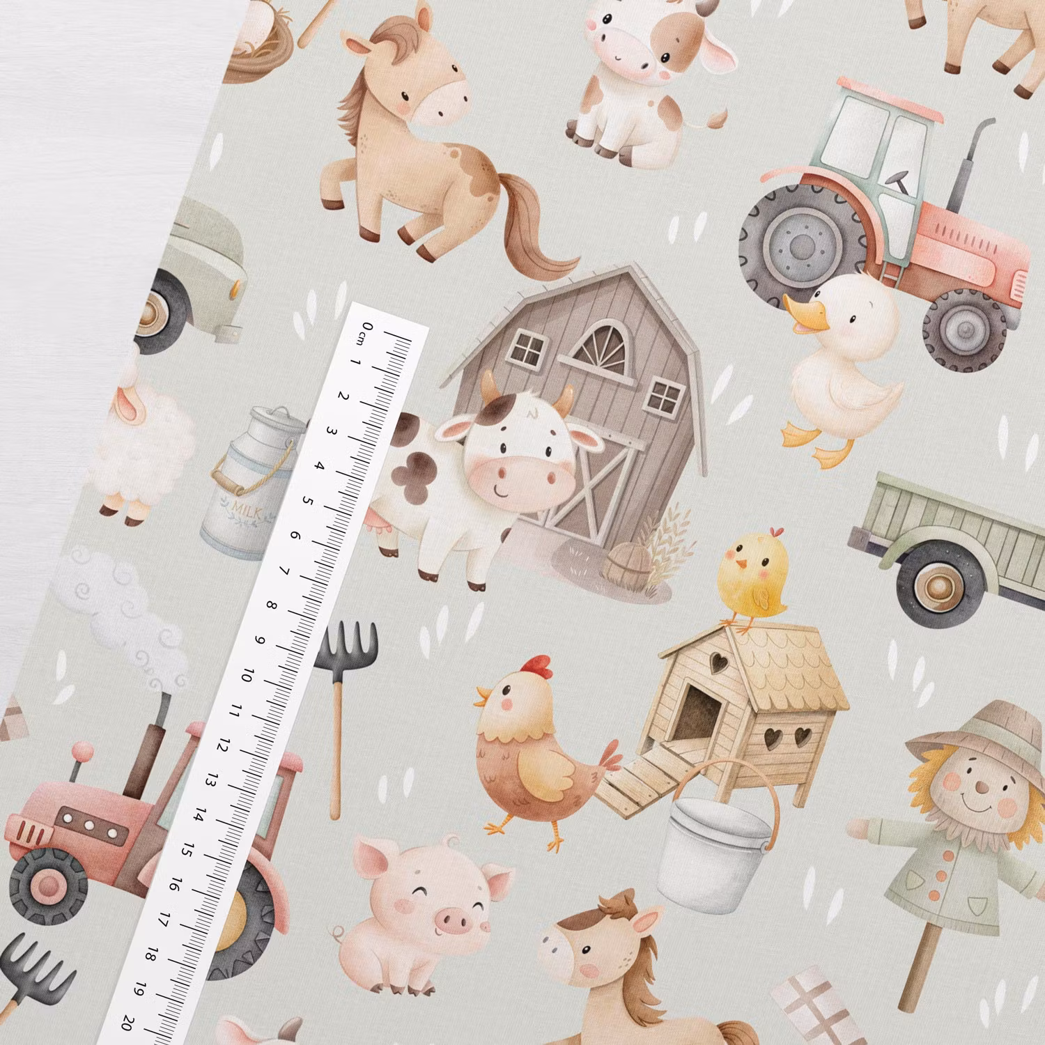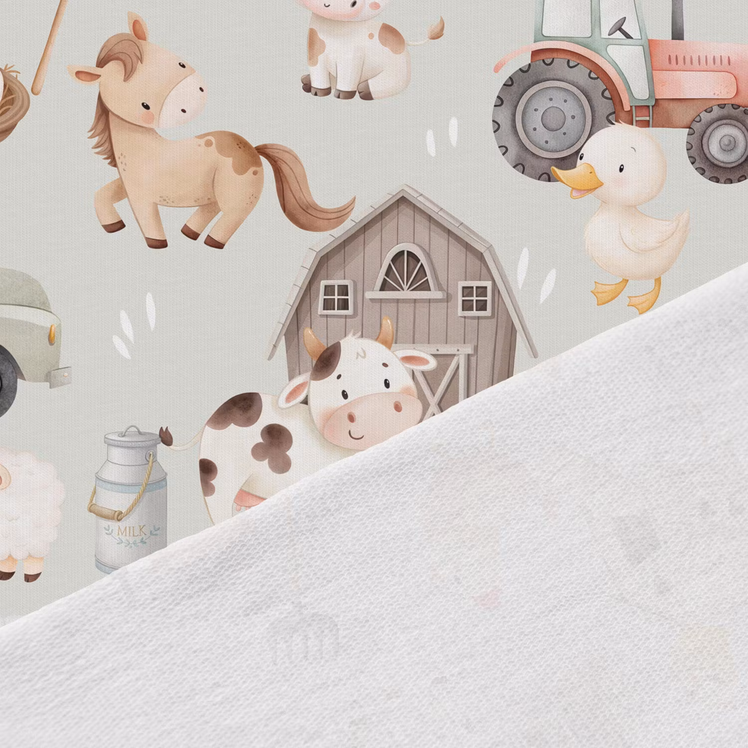 Bondgården oliv är ett perfekt val för alla som gillar bondgårdsdjur, traktorer och en lite mer naturlig färgskala