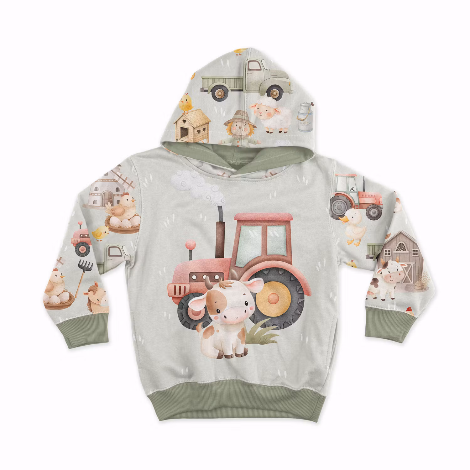Ett mysigt joggingtyg i en lugn och harmonisk olivgrön färgskala med det populära motivet Bondgården. Här möter du söta gårdsdjur, traktorer och små detaljer från lantlivet i mjuka, dämpade toner.