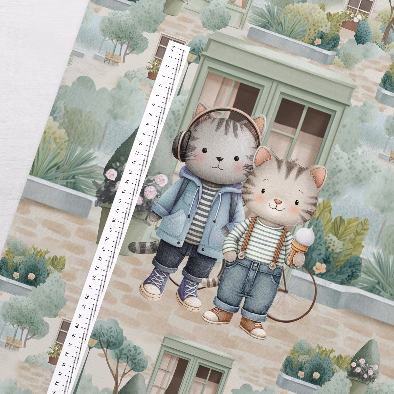 Två kattkompisar njuter av en lugn stund tillsammans – med hörlurar, glass och vänskap i fokus. Illustrationen har en mjuk, handmålad känsla som passar perfekt till kreativa projekt.